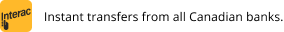 | Rectangular The text Instant transfers from all Canadian banks. is part of the graphic asset. | ![]() |